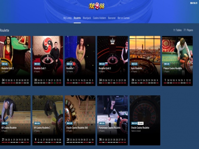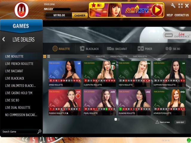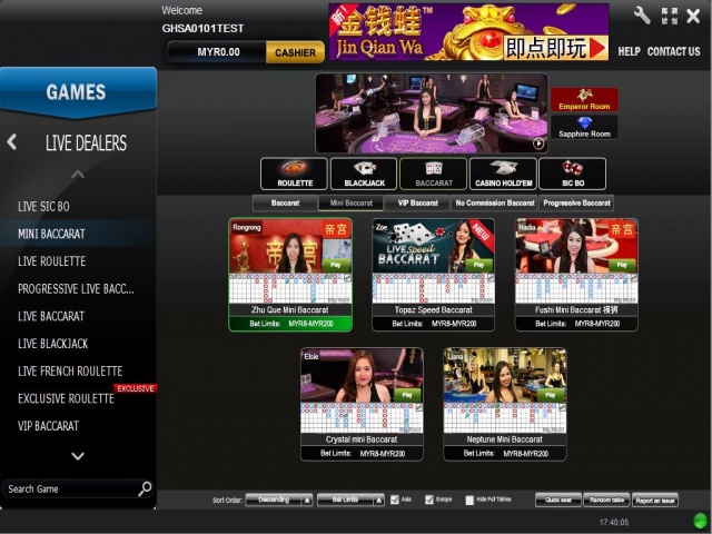 Pelbagai permainan kasino online dalam Lucky Palace termasuk Live Baccarat, Live Blackjack, Live Roulette, Live Hold'em, Live Sic Bo dll.